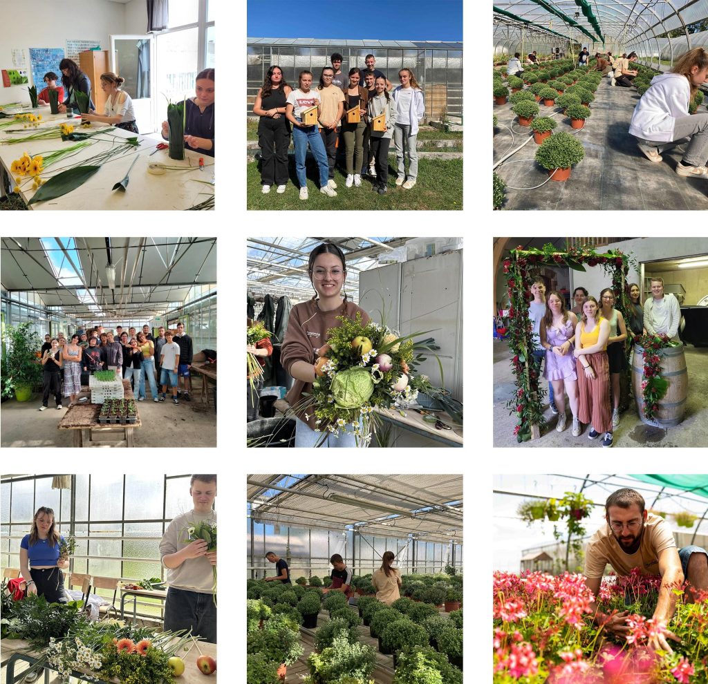 De la formation longue via un CAP Métiers de l’agriculture en apprentissage, un bac pro production Horticole, un CAP Fleuristerie, les 4ème et 3ème à projet professionnel à la formation courte via les nombreuses certifications (irrigation, conduite de tracteur, lutte phytosanitaire), c’est plus d’une centaine d’apprenants qui se forment à leur futur métier sur notre exploitation horticole. De la mise en culture à la commercialisation, tout est fait pour placer l’élève au centre du processus de production. Maîtrise des gestes techniques (semis, rempotage, taille, bouturage, récolte…), connaissance des acteurs de la filières horticole, vente directe dans nos serres, les jeunes et adultes ont l’opportunité de se forger une première expérience professionnelle de terrain dans un contexte dédié à la pédagogie.